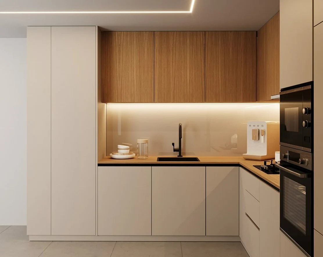 خشب لامي هو خشب صلب مستدام ومتین، مما يجعله خيارًا ممتازًا لتصميم المطابخ العصرية. يعد خشب لامي من أقوى أنواع الخشب، مما يجعله متينًا وموثوقًا، قادرًا على تحمل الضغط الناتج عن الاستخدام اليومي والتعامل المكثف في المطبخ دون أن ينكسر أو يتلف بسهولة. يتميز بمقاومته العالية للتآكل ويمكنه تحمل التعرض للرطوبة والتغيرات البيئية دون أن يتلف أو يتعفن، مما يجعله مناسبًا للاستخدام في المطابخ التي تتعرض باستمرار للبخار والرطوبة. يتوفر بمجموعة متنوعة من التصاميم والنقوش، ويمكن استخدامه لتصميم المطابخ العصرية والكلاسيكية على حد سواء. يمكن تشكيل الخشب وقصه إلى أشكال مختلفة لتلبية احتياجات التصميم الفريدة، كما يمكن تطبيق مجموعة متنوعة من طرق التشطيب لتعزيز جماله وحمايته. يمكن استخدام الدهانات والورنيش لتحقيق لمسة نهائية مميزة ولامعة، أو تركه طبيعيًا لمظهر أكثر عفوية وطبيعية.